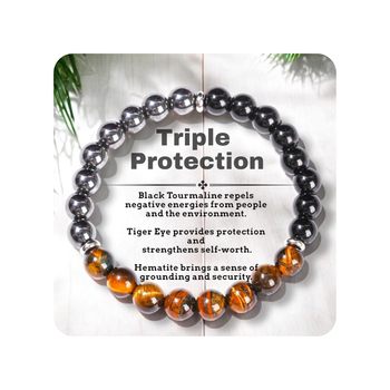 حماية ثلاثية عين النمر ، التورمالين الأسود ، وسوار الهيماتيت ، القوة والحماية والتوازن للرجال والنساء ، G
